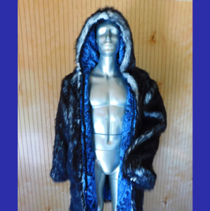 Light Up Coat - Black Faux Fur - Mandalas Skulls and Marijuana Interior